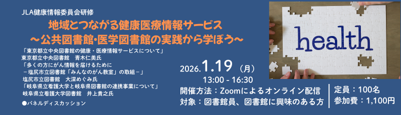 - 開催日2026-01-19JLA主催行事2025年度健康情報委員会研修会